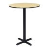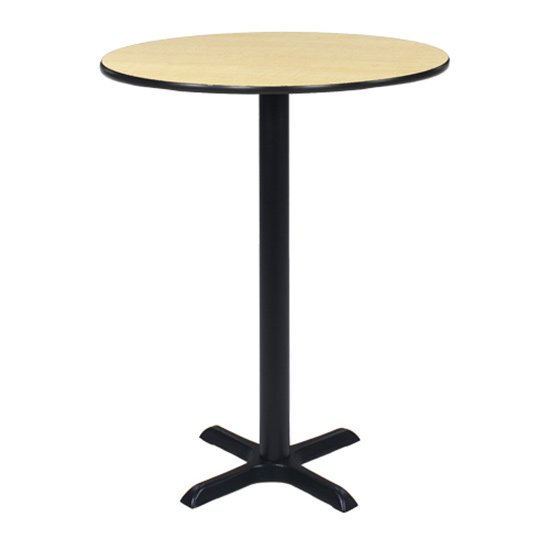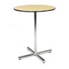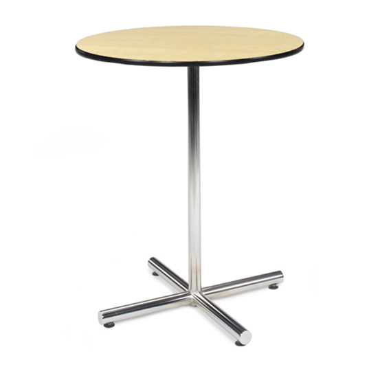 Bar table with Black or Chrome Base. 36″ available with Black, Sugar Maple, and White top.
