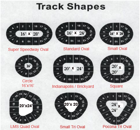 Dimensions: Track Size: 16’W x 24’L x 3.5’H (Standard)