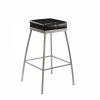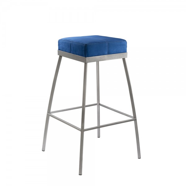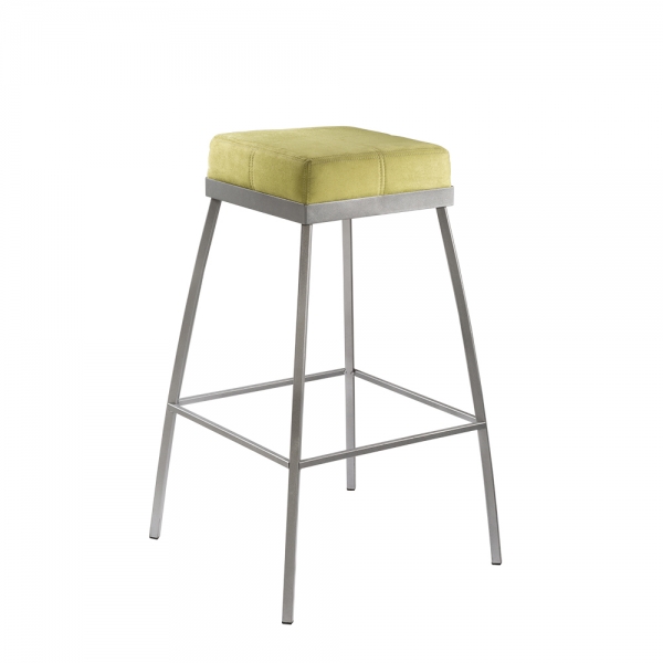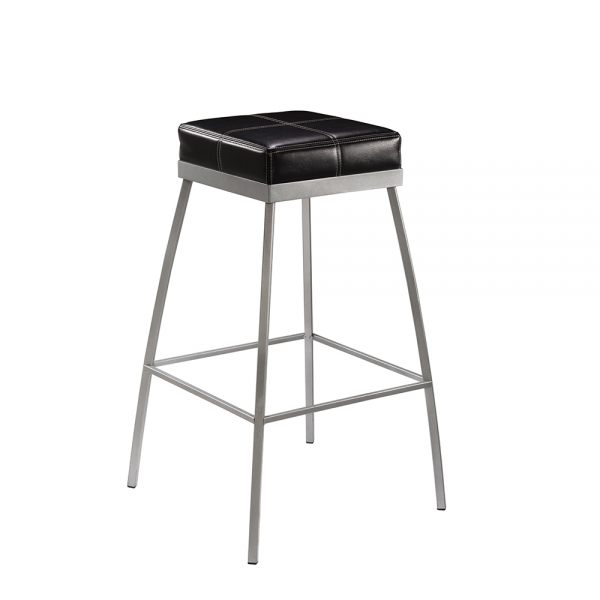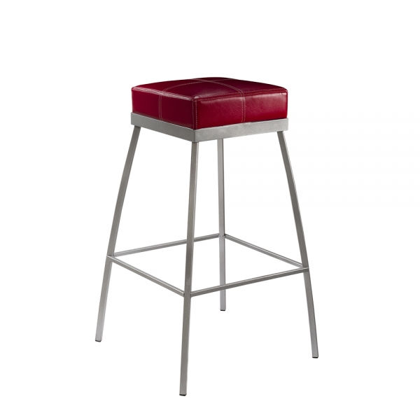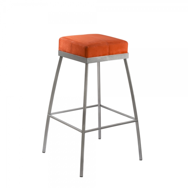 A minimalist barstool with silver powder coated frame that can be used with a variety of bar or communal tables. Available in white vinyl, black vinyl, blue ultra suede, green ultra suede, orange ultra suede or red vinyl.