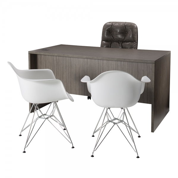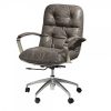 Contemporary distressed gray vinyl mid-back executive chair on casters with adjustable chrome frame.