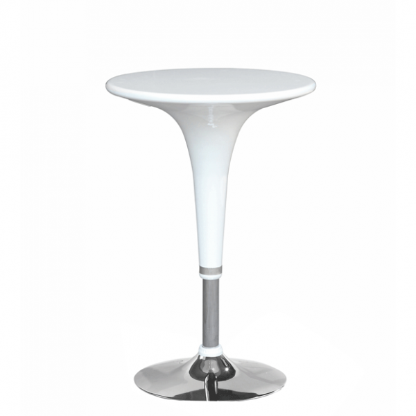The modern design of this bar table will bring a flavor of modern style to your room. Its compact size fits as a bar table, a side table, or even as a corner table. Raising and lowering the table base is made simple with the gas hydraulic piston system. Also available in Black