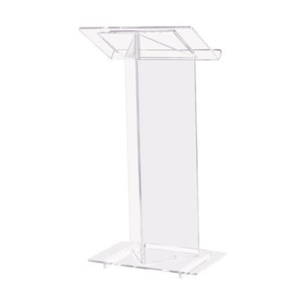 The full lectern measures 46″H x 24″W x 15″D and comes with a weight of 55 lb. It is designed with a half-inch and 3/8-inch Plexiglas material with a clear finish that guarantees the lectern will stay sturdy and as good as new even after many years of use.