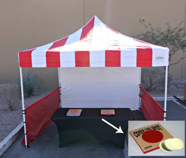 Includes a pair of Cover the Spot Games, 10×10 Tent, and Attendant