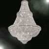 100% CRYSTAL CHANDELIER, this silver Empire chandelier is characteristic of the grand chandeliers which decorated the finest Chateaux and Palaces across Europe and reflects a time of class and elegance which is sure to lend a special atmosphere to any event. Dimensions: 70″ H x 50″ W.