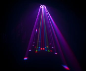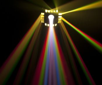 Cubix™ 2.0 is a redesigned multicolored, LED centerpiece that combines two effects in one fixture. Centrally-mounted LEDs produce multi-colored effects and animations that flow across the room, while the quad-sided derby effect floods the dance floor with rotating, multi-colored beams. The effects are independently controllable to create custom light shows, or can be operated simultaneously for a full out barrage of light. A new streamlined casing and improved optics make for an attractive addition to any rig.