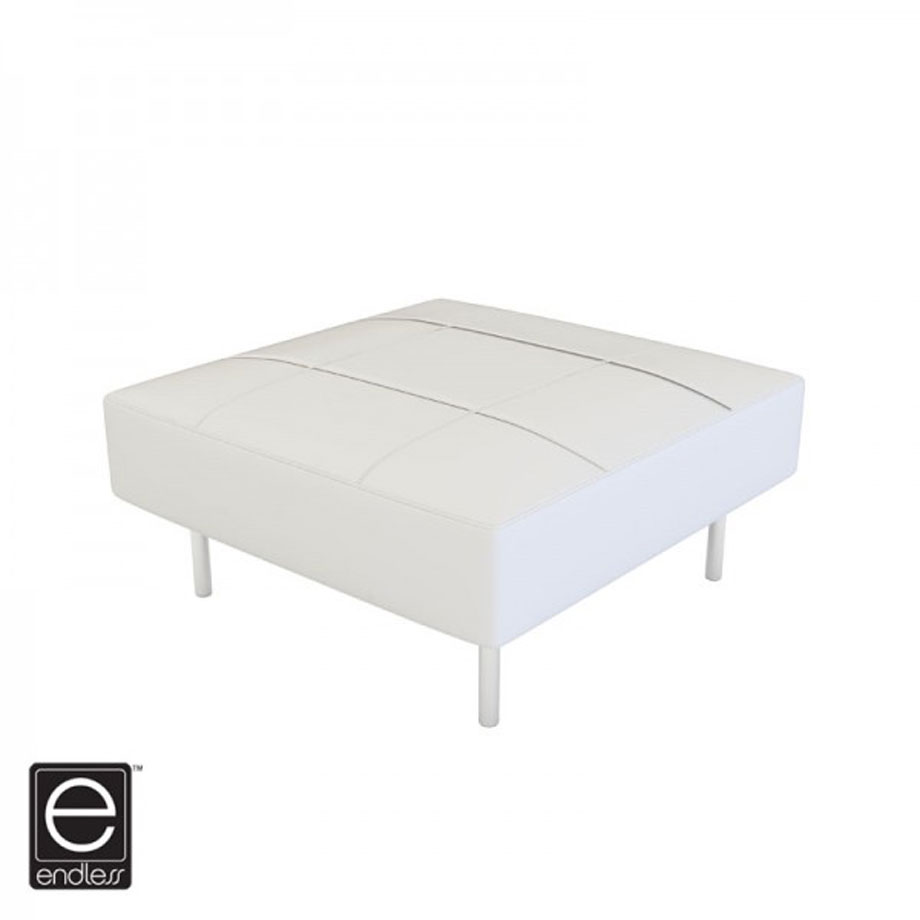 Modular white or black vinyl square seat/ottoman with chrome legs. Available in standard or dining height.