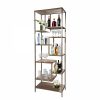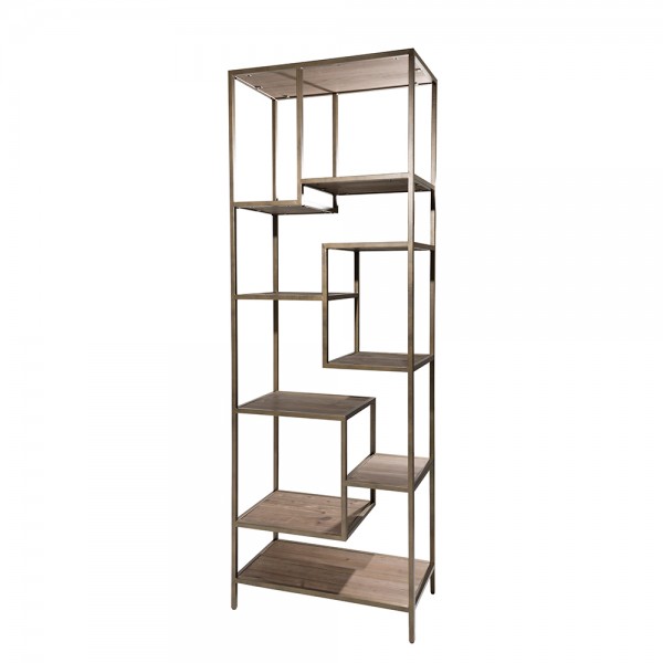 Featuring stylish bronze metal and wood shelving, this geometric shelving unit is perfect for your temporary office or product display.