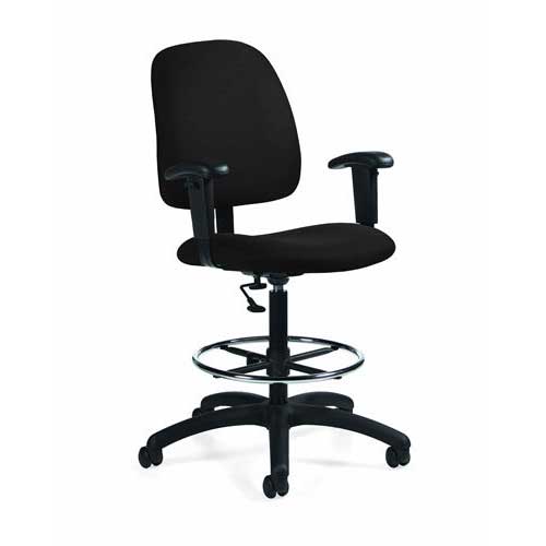 Drafting stool with high back design and lumbar support features a wide range of adjustment options. Available with or without arms.