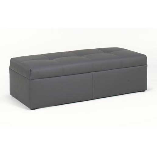 Sleek contemporary style bench ottoman in gunmetal grey vinyl and clean lines.