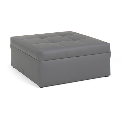 Sleek contemporary style square ottoman in gunmetal grey vinyl with clean lines