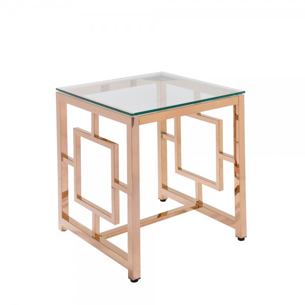 Geometric rose gold end table complements any traditional or contemporary space. Also available with marble top.