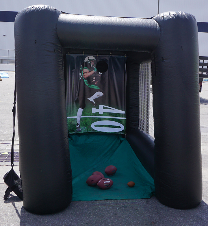 The Football Toss Game is a great addition to any sports themed event or even for team building. Let your guests satisfy the inevitable urge to get into the game with our Football throw. These 10’x10′ inflatable games can absorb the even the most powerful pass.