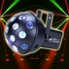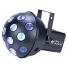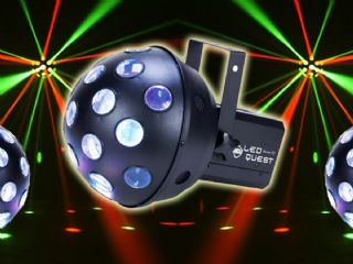 Features * Bright Red, Green & Blue rotating beams shoot from 19 lenses covering a large area * 15W total LED – 1x 5W Red LED, 1x 5W Green LED, 1x 5W Blue LED * Sound active from built-in programs * Sound active sensitivity knob on rear panel * Uses a stepper motor for smooth, quick movements * Strobe effect * Beam angle: 130 degrees * Master/Slave linkable via XLR cable * Runs extremely cool! – No Duty Cycles! – Run all night! * Includes hanging bracket * Power Consumption: 20W maximum * Extreme long lifetime of the LEDs (50,000 hr. rating) * Multi-voltage Operation: AC 100- 240V, 50/60Hz * Dimensions (LxWxH): 18.25”x12.25”x12.25” / 460x310x310mm * Weight: 9 lbs. / 4 kg.