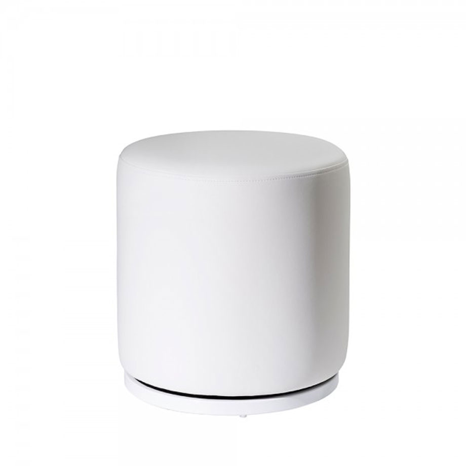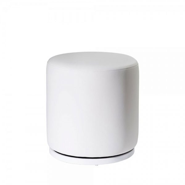 This movable swivel ottoman with a white gloss metal base is available in 10 fashion colors. Perfect for adding a pop of color to any design space. Available in white vinyl, gray fabric, linen fabric, raspberry fabric, red fabric, rose quartz fabric, plum fabric, meadow green, pear yellow fabric, blue fabric and orange fabric.