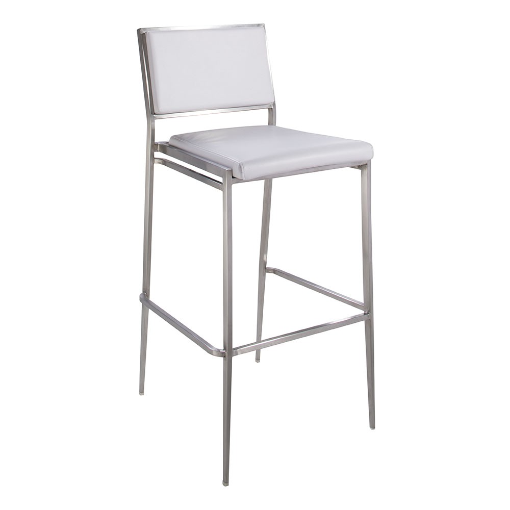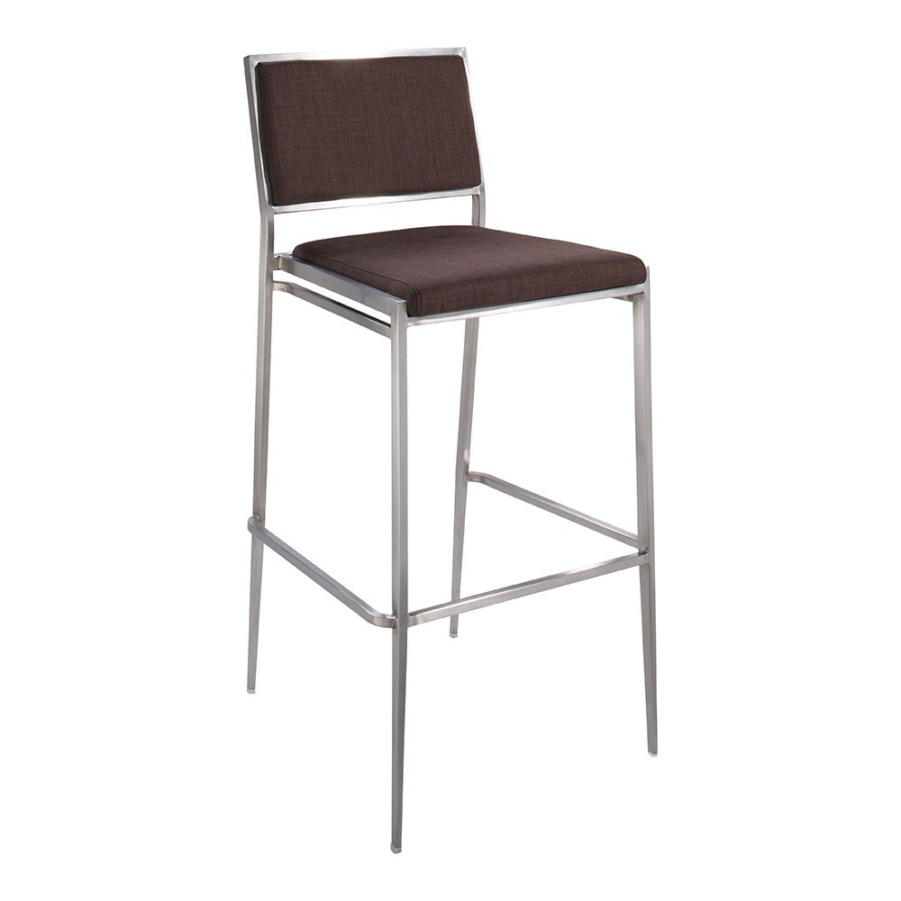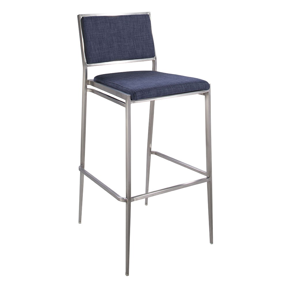 Brushed metal frame barstool with modular seat and back in several colors.