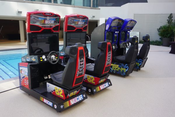 NASCAR racing game! Unrivaled graphics choose from all your favorite NASCAR drivers and courses. Units are linkable; perfect for fast paced competition. Players can select from multiple “real life” tracks and choose to be one of the actual “real life” professional NASCAR racers! We can electronically link all six-player positions so each player can race against each other. Add a huge overhead screen for other guests to watch the action!