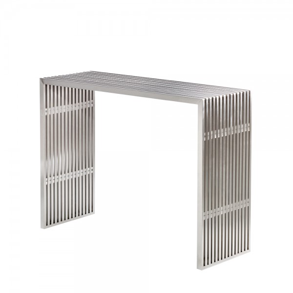 Brushed metal mid-century classic console/sofa table for a timeless but modern look.
