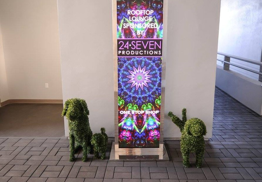 Small dog topiary crafted from realistic faux greenery
