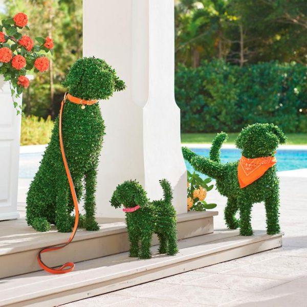 You don’t need a country estate or master gardener to enjoy the everlasting charm of our Faux Boxwood Garden Dogs. They don’t require grooming or water, and never bark! A simple and playful way to fetch smile after smile in the garden, at an entryway, or nearly anywhere in your landscape. Lifelike all-weather materials mimic lush, healthy, natural boxwood, down to the smallest details, and maintain their beauty season after season. They’re easy to live with, too: hassle-free, mess-free, and the neatly manicured look lasts without worry or pruning. Just place, and unleash the instant personality.