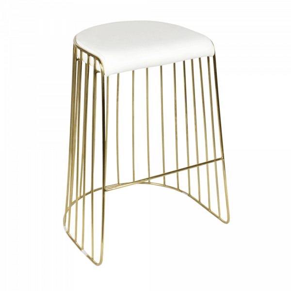 Veil Barstool has a wire gold base with white padded seating.