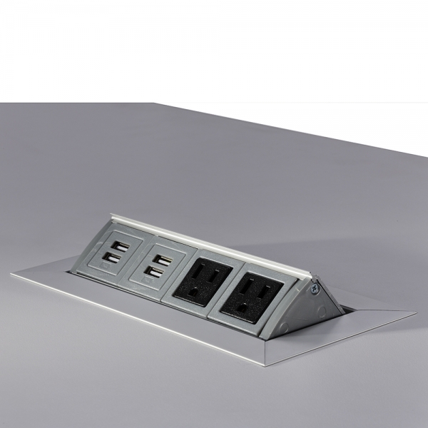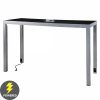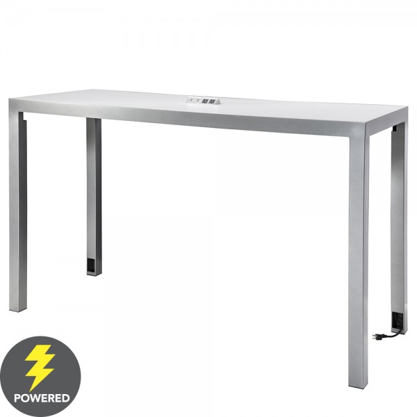 The Ventura Communal Bar Table is an essential element for your next lounge or event. Powered option available features one centered charging hub to power up your lounge or event. With a white or black laminate top and silver powder coated legs, it’s perfect for working or socializing. The charging hub includes 2 AC and 4 USB ports. Wire management is included within each leg.