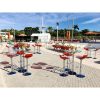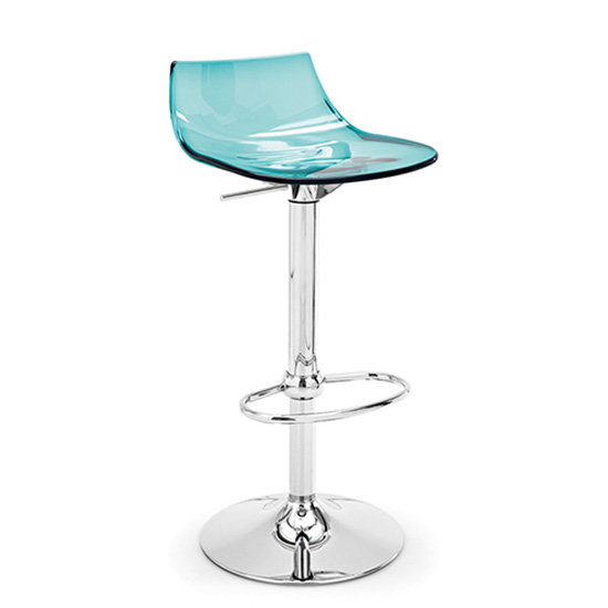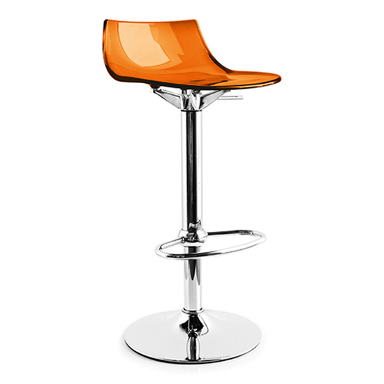 Height adjustable stool with technopolymer shell and chrome steel frame sits 18″H at the lowest setting. Available in Orange, Smoke Grey, and Teal.