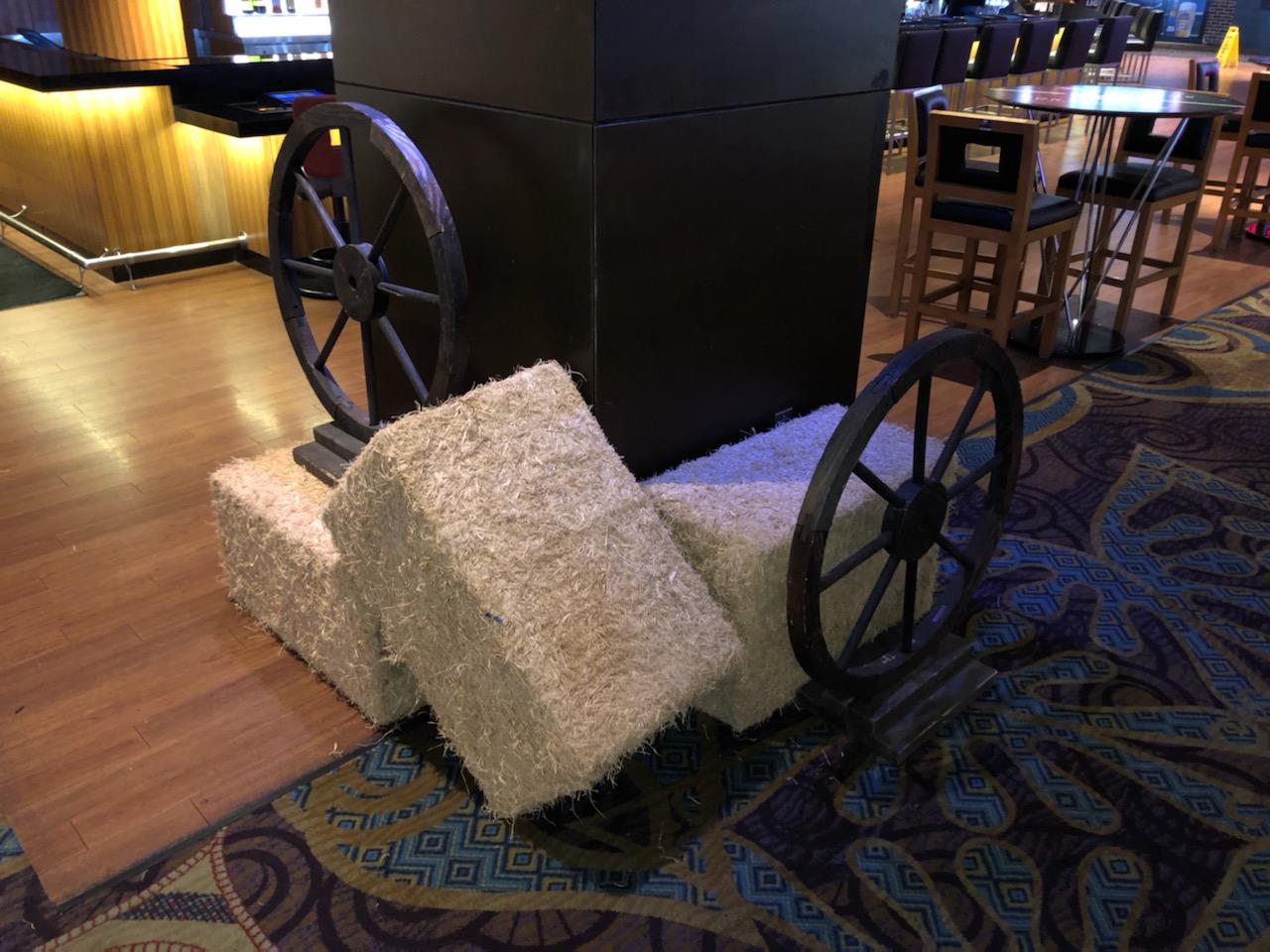 This wagon wheel is a fantastic addition to any western themed event or party. We have a full inventory of western themed décor including cactus, saloon doors, haystacks, and whiskey barrels.