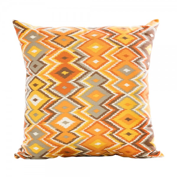 Contemporary ethnic chic design with vibrant colors. Suitable for indoors or outdoors. Available in orange/yellow and blue/green.