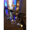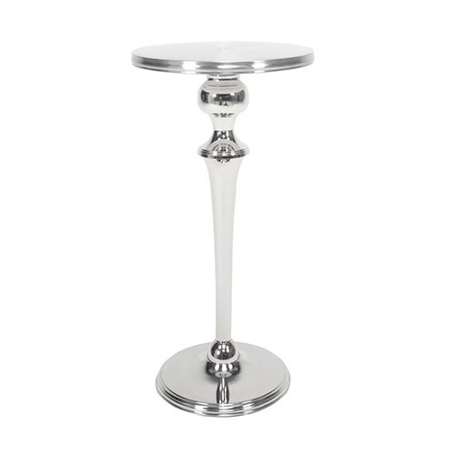 Sleek stainless steel bistro style bar table features steel chrome base with turned look.